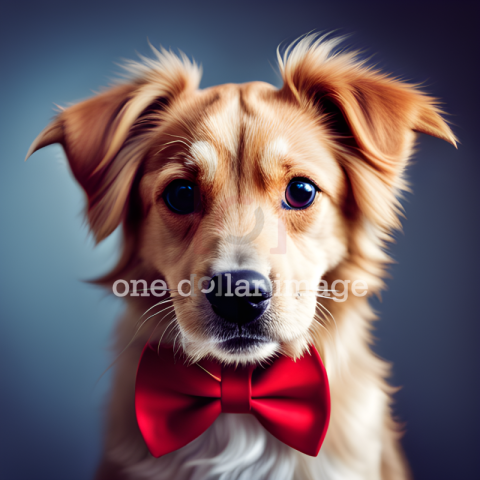 Create a heartwarming image of a fluffy light brown puppy with soulful eyes wearing a charming red bowtie The puppy should have floppy ears a wagging tail and a happy friendly expression The ba (1)