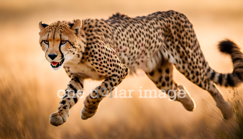 Create a dynamic and exhilarating image of a cheetah in mid leap The cheetah should be captured in a moment of extraordinary athleticism with its sleek body fully extended in a graceful arc as it so (1)